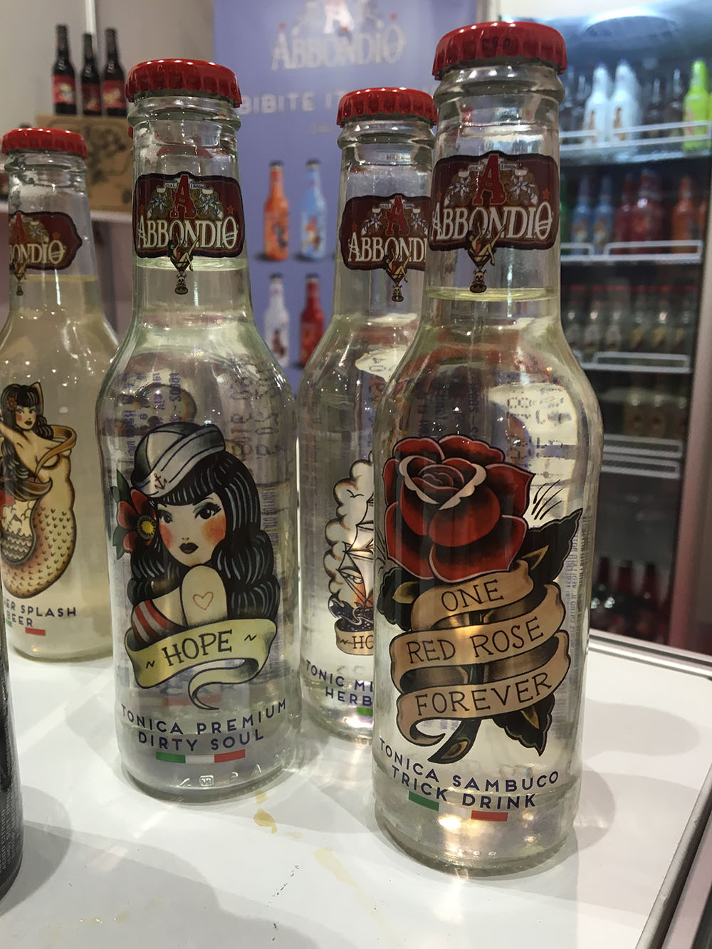 - wszystko popite…. (nie, nie winem, bo środek dnia a samochód czekał na parkingu) …. tonikiem Abbondio Bianca Gazzosa (tonik orzeźwiający, a do tego jaki design butelek!)